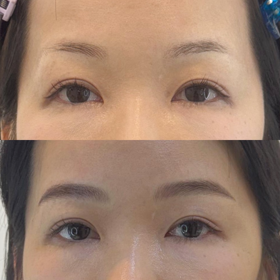 A harmonious fusion of meticulously crafted hair strokes and a soft, misty finish. This eyebrow technique is tailored for individuals seeking the allure of both defined hair-like details and the richness of a powdery effect. Ideal for those yearning for luxuriously dense and subtly shaded brows